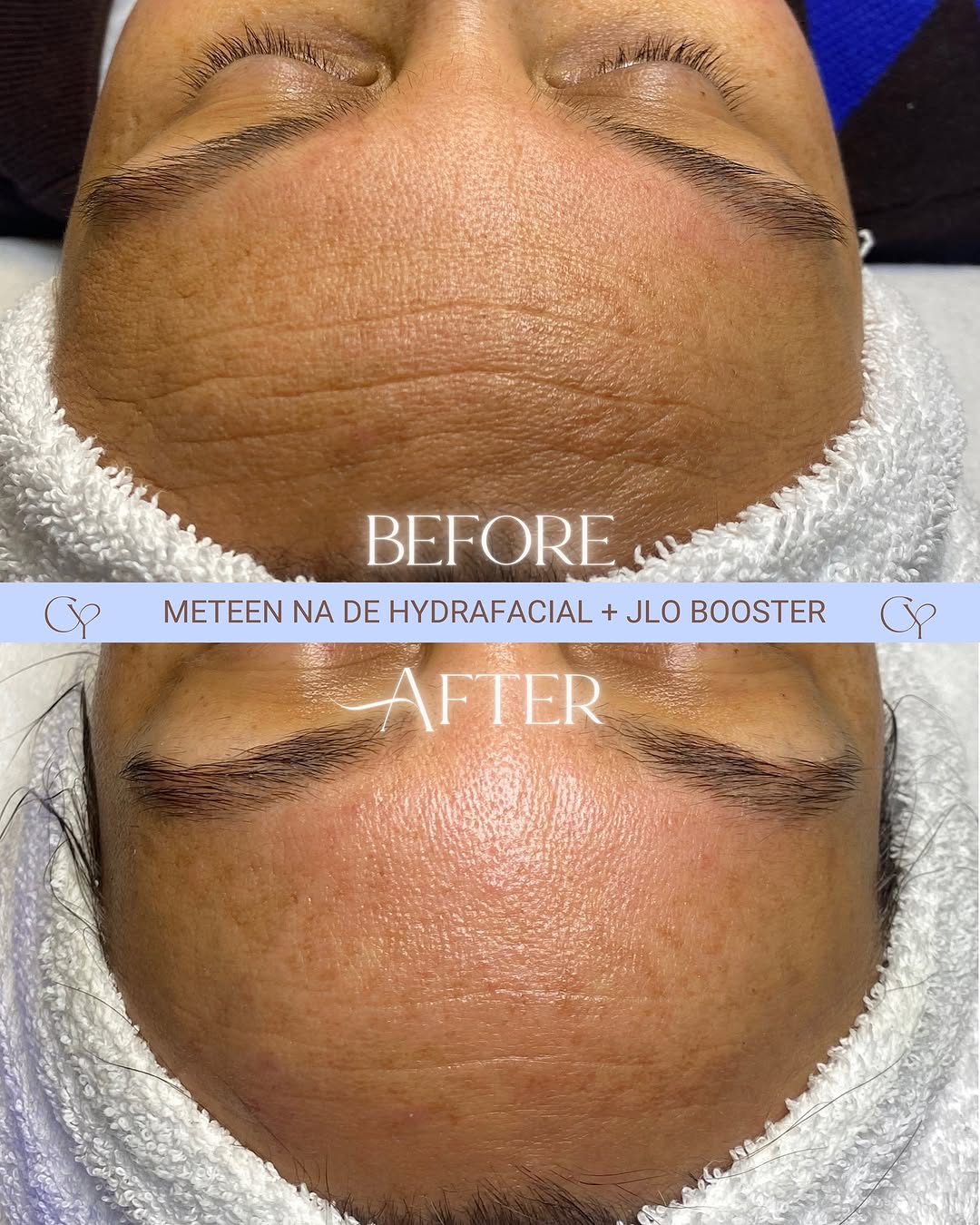 Een Hydrafacial™ is een geavanceerde gezichtsbehandeling die je huid diep reinigt, exfolieert en hydrateert met krachtige serums. Het verwijdert dode huidcellen, onzuiverheden en talg, terwijl het voedende ingrediënten aan je huid toevoegt voor een directe glow en een stralende, gezonde uitstraling.